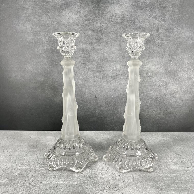 De kandelaars staan als nr. 15 in de catalogus Val Saint Lambert 1913. Zeer goede algemene staat voor hun leeftijd. Minimale gebruikssporen. Geen breuk, geen scheuren.