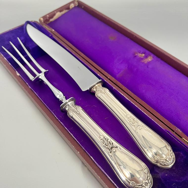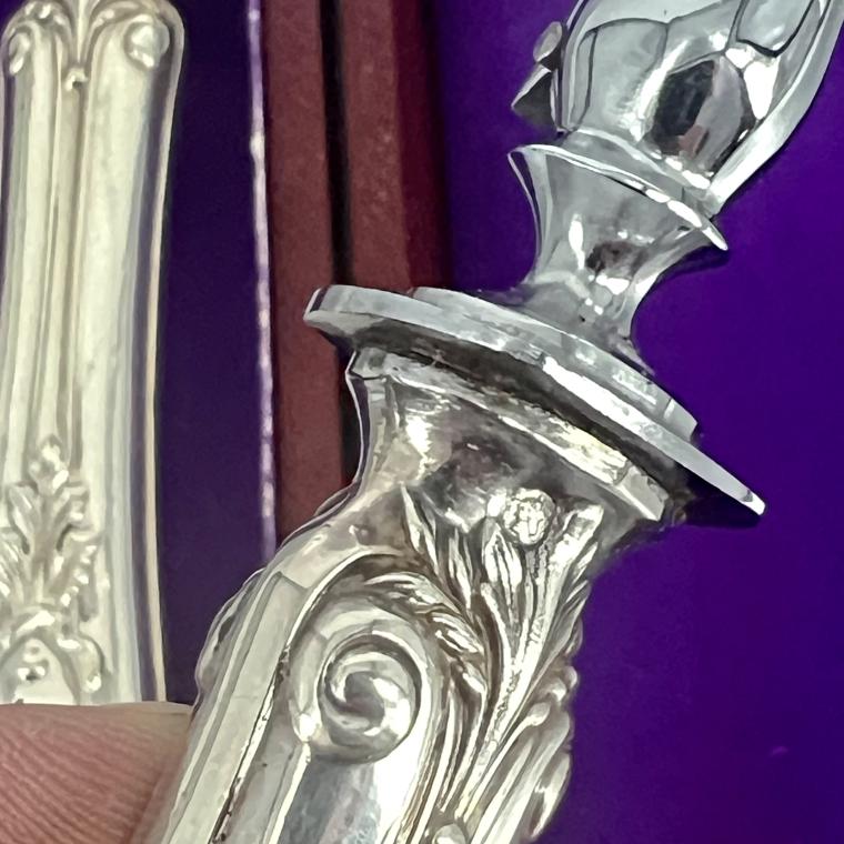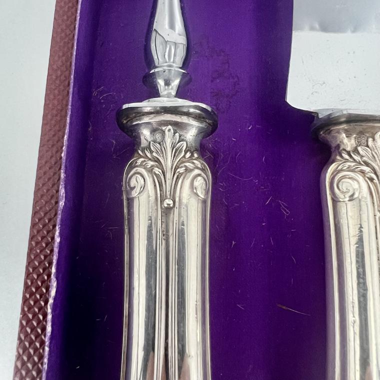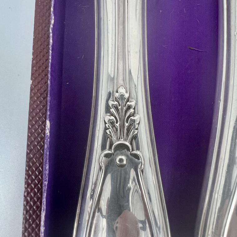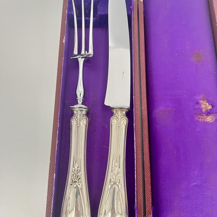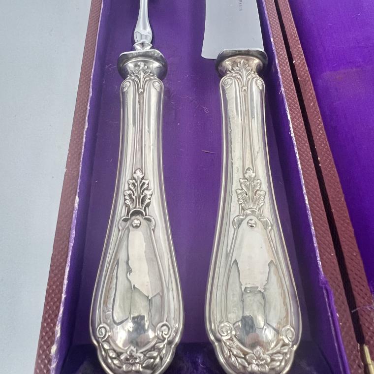 Gaaf en stoer 1e gehalte antiek zilveren snijcouvert uit Parijs, in foedraal. Vervaardigd in de 19e eeuw.