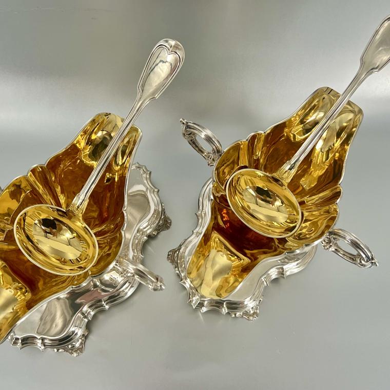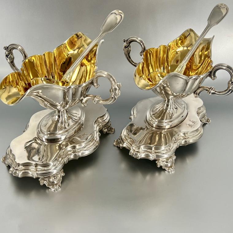 Een stel geweldig chique antiek zilveren sauskommen