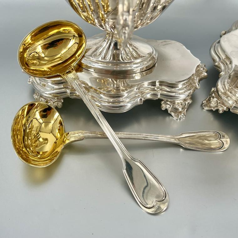 Elk stuk zilver is voorzien van de nodige franse zilverkeuren, waaruit ook blijkt dat het sauskommen van 1e gehalte zilver betreft.