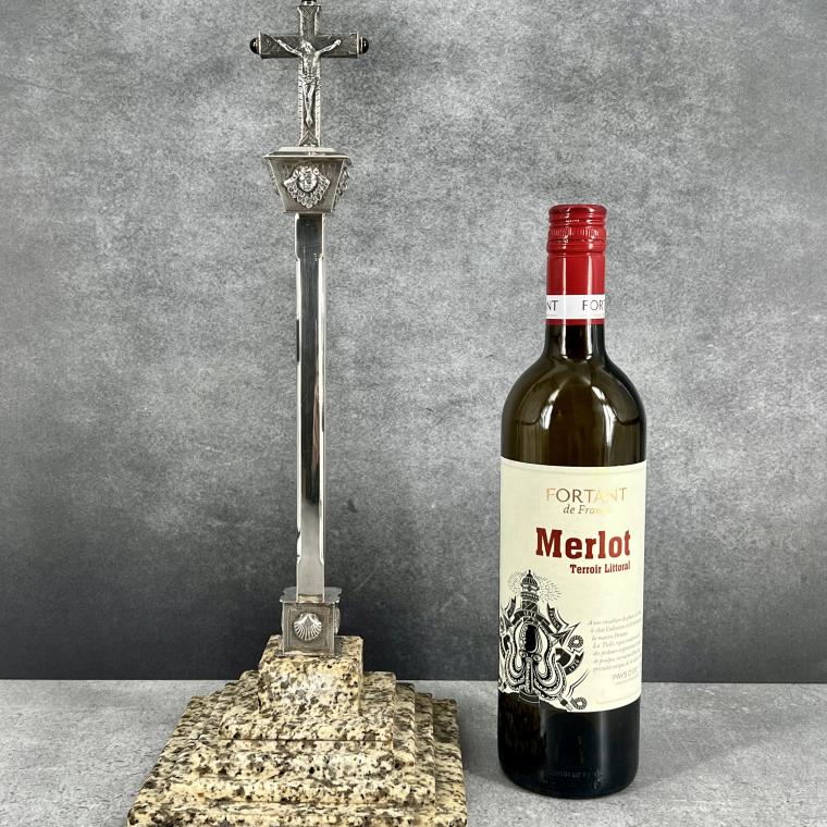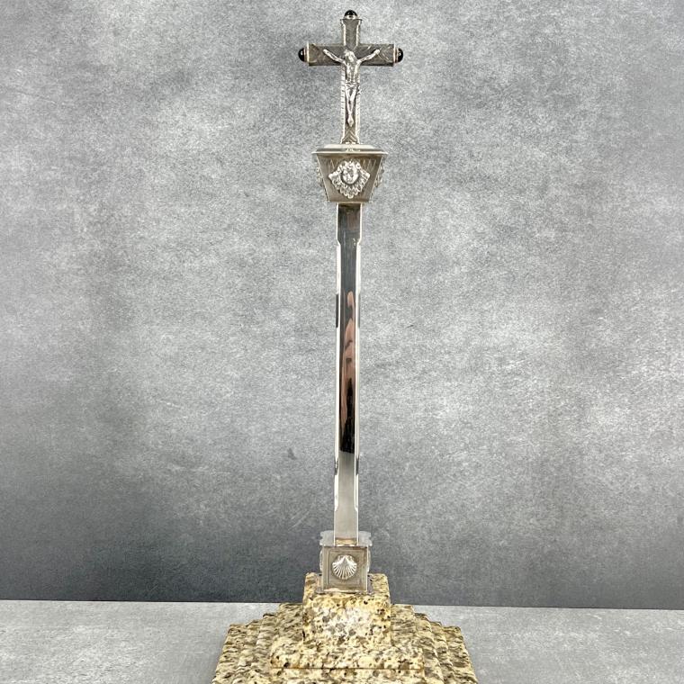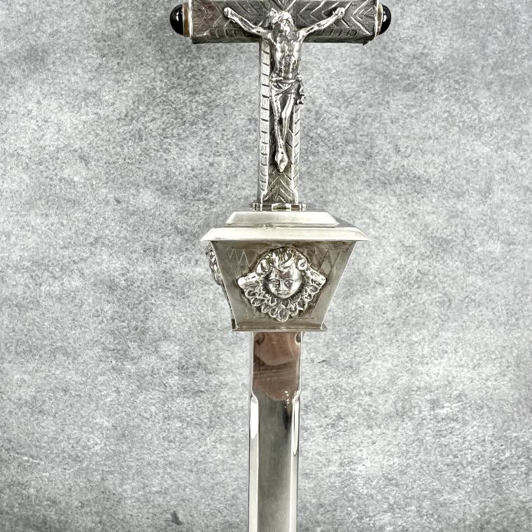 Groot antiek zilveren kruis, vervaardigd in Spanje, zie het zilverkeur.
