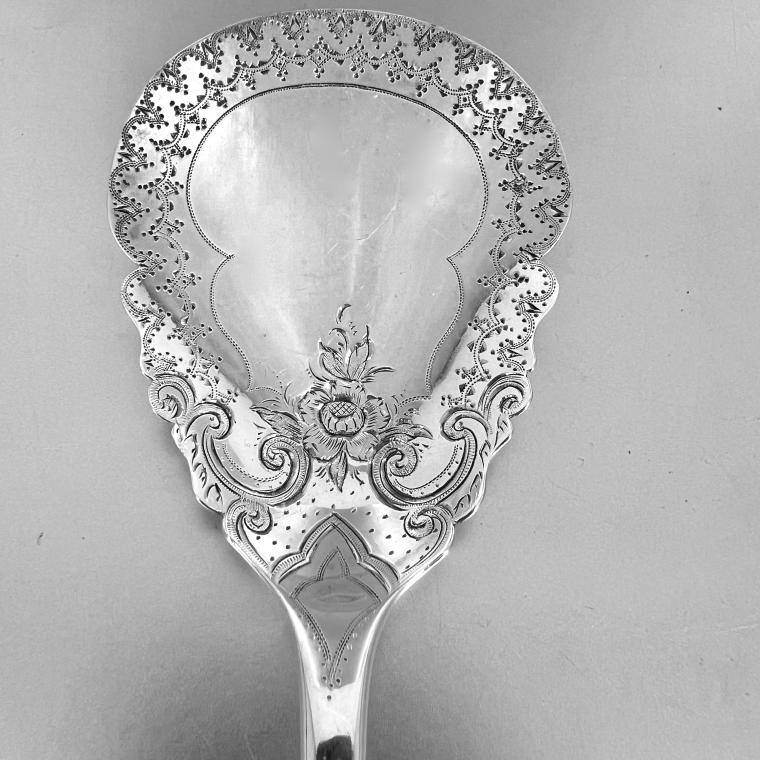 Grote Amsterdamse antiek zilveren aardbeienschep