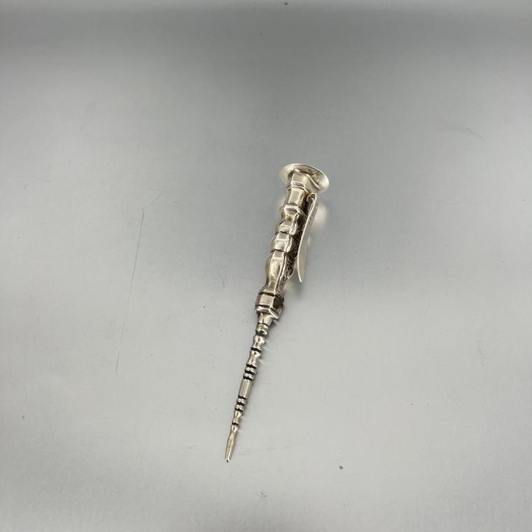 Zilveren breikoker uit Schoonhoven. Vervaardigd door H. Loren.